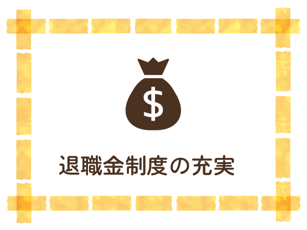 福祉医療機構の退職金制度に加え、栃木県民間社会福祉施設職員退職手当共済財団の退職金制度にも加入しており、中途退職、定年退職後の不安を解消できるよう努めています。