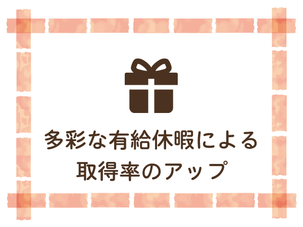 誕生日休暇や記念日休暇、シニア休暇等、年次休暇を取得しやすいように様々な休暇を設けています。これらを始めたことで、年次休暇の取得率も向上しています。