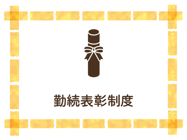 勤続年数3年、5年、10年以降5年毎に勤続40年まで表彰金と特別休暇を授与しています。長く勤続してくれている職員に対する感謝の気持ちをこのような形で表現しています。